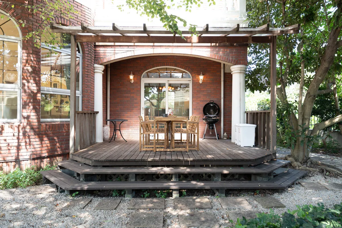その他、庭には自然を楽しみながら屋外飲食をお楽しみいただけるウッドデッキ。