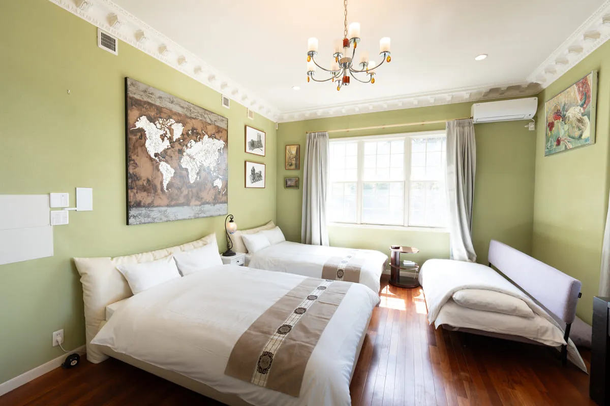 全ての寝室でベッド8台、ソファベッド1台ご用意可能です。