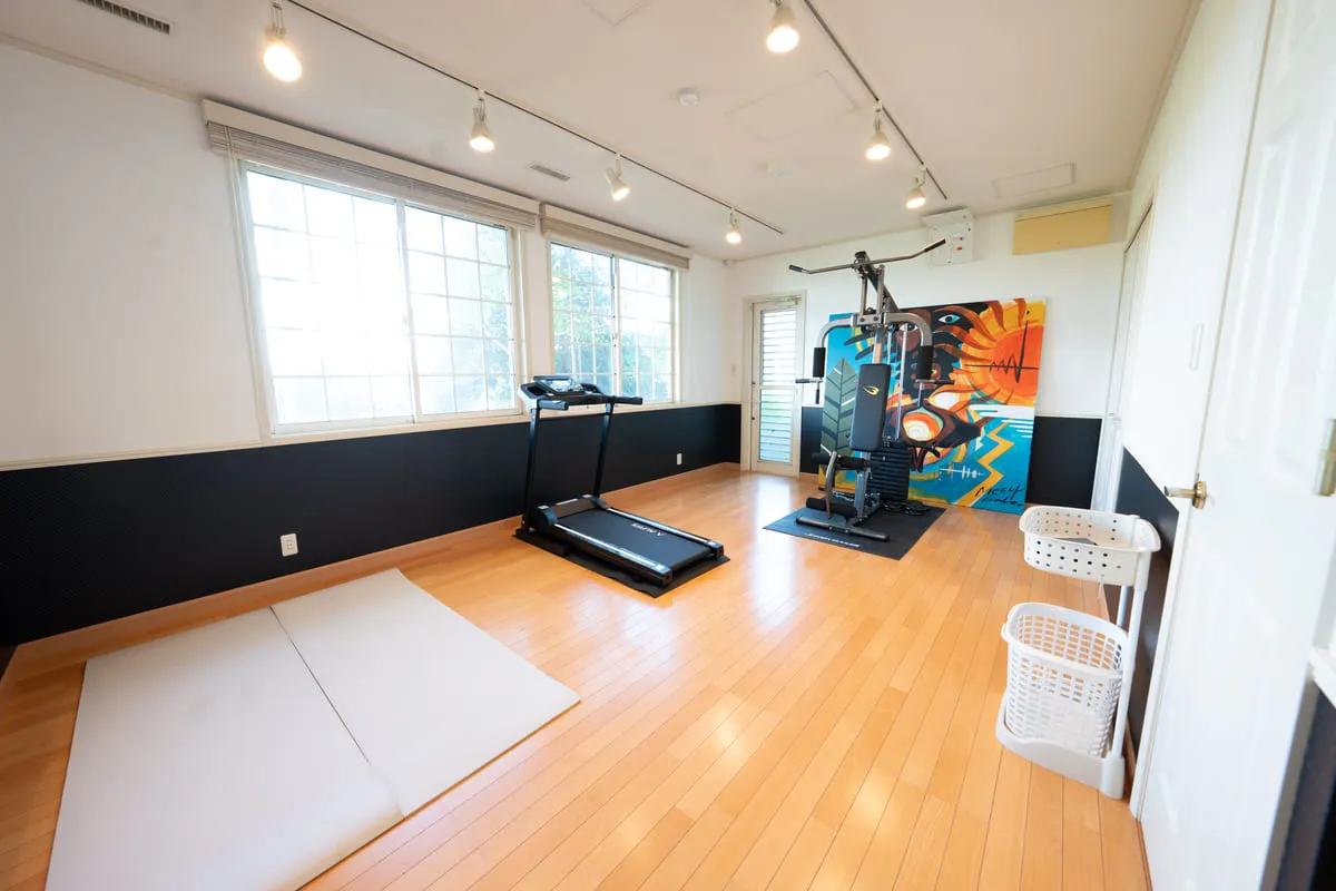 フルキッチン、ダイニング、リビング、トイレ、シャワールーム付きトレーニングジムが備わっております。